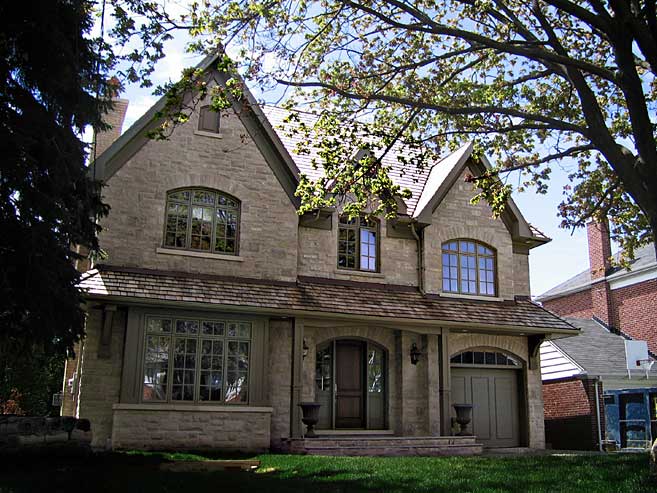 A new 2 storey, 4 bedroom, 4000 sf home in a prestigious residential area. Open concept layout on the main level, landscaped walk-out from the basement, stone and matching brick, and cedar shakes for the exterior treatment. Custom interiors made in close cooperation with an interior designer.
